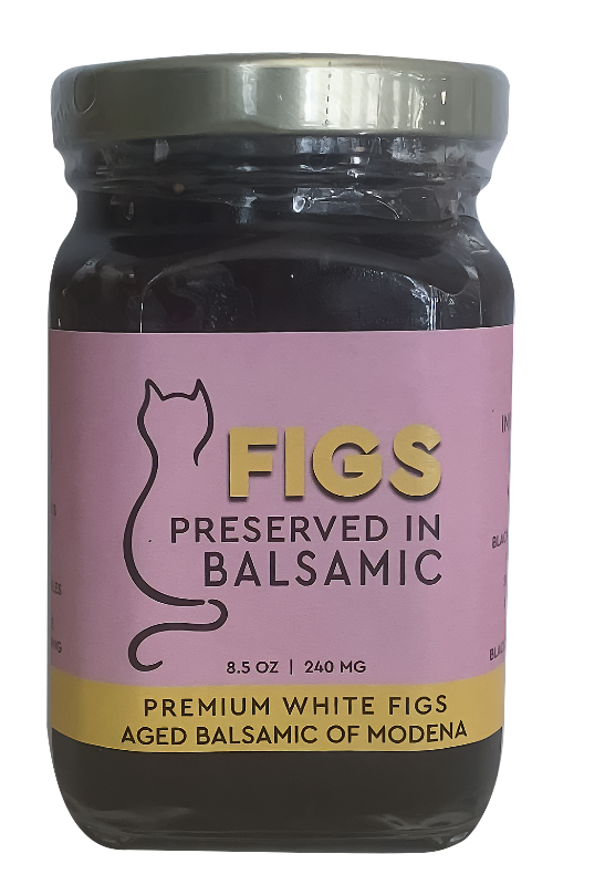 Calmyrna white figs from California preserved in a reduction of 5 year old cask-aged Balsamic from Modena ... all-natural, no artificial anything ... delicious on salads, cheeses, desserts and more ...